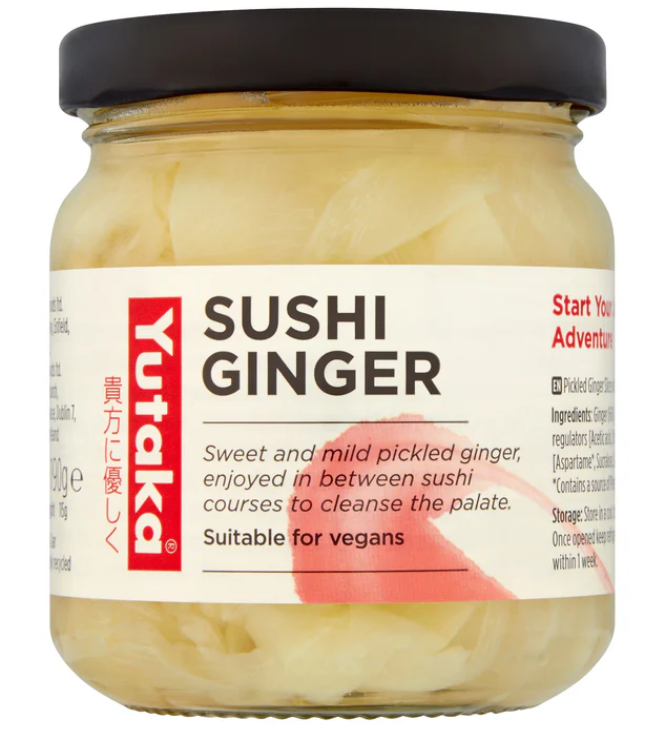 Sweet and mild pickled ginger, enjoyed in between sushi courses to cleanse the palate. Delicately crunchy, with a refreshing bite.