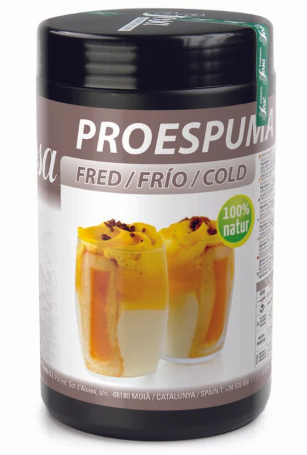A powdered agent used to create light, stable foams and espumas from cold liquids, such as fruit purées, juices, and creams. Suitable for use with all liquids, it is heat resistant and freezable.